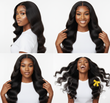 The body wave texture offers the perfect balance between smoothness and fullness. It can be worn in its natural wave pattern or styled straight while maintaining body and bounce with proper care.
